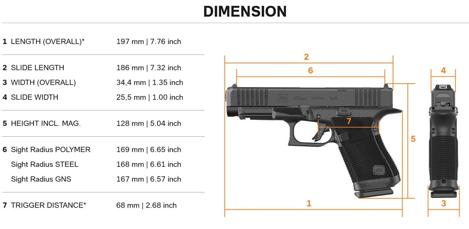 La GLOCK G49 Gen6 ofrece un rendimiento de corredera larga en un armazón compacto, brindando precisión y control superiores. El diseño Gen6 incluye una ergonomía mejorada, una textura de empuñadura refinada y un diseño compatible con mira óptica, lo que proporciona control, adaptabilidad y confiabilidad para el trabajo y el uso diario.