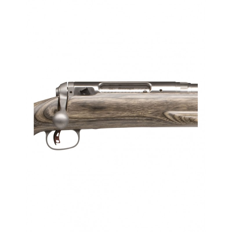 El cañón de este modelo es de contorno pesado de 29” (737 mm.) fabricado en acero inoxidable. Un cañón largo es un requisito obligado para aprovechar al máximo los gases producidos por el cartucho y alcanzar la máxima distancia de abate. Una característica de los cañones SAVAGE es la constancia en la precisión, fruto según este fabricante a su experimentado estriado de los cañones mediante la técnica de “button-rifled”, de la que es un reconocido experto.