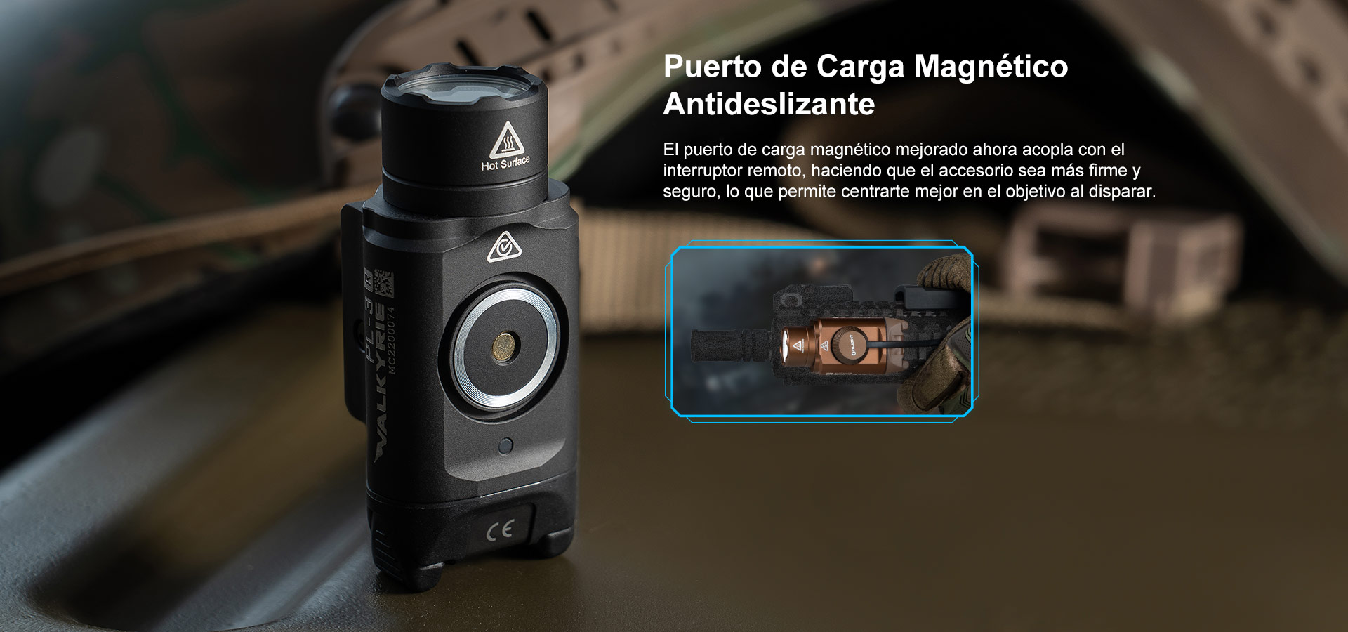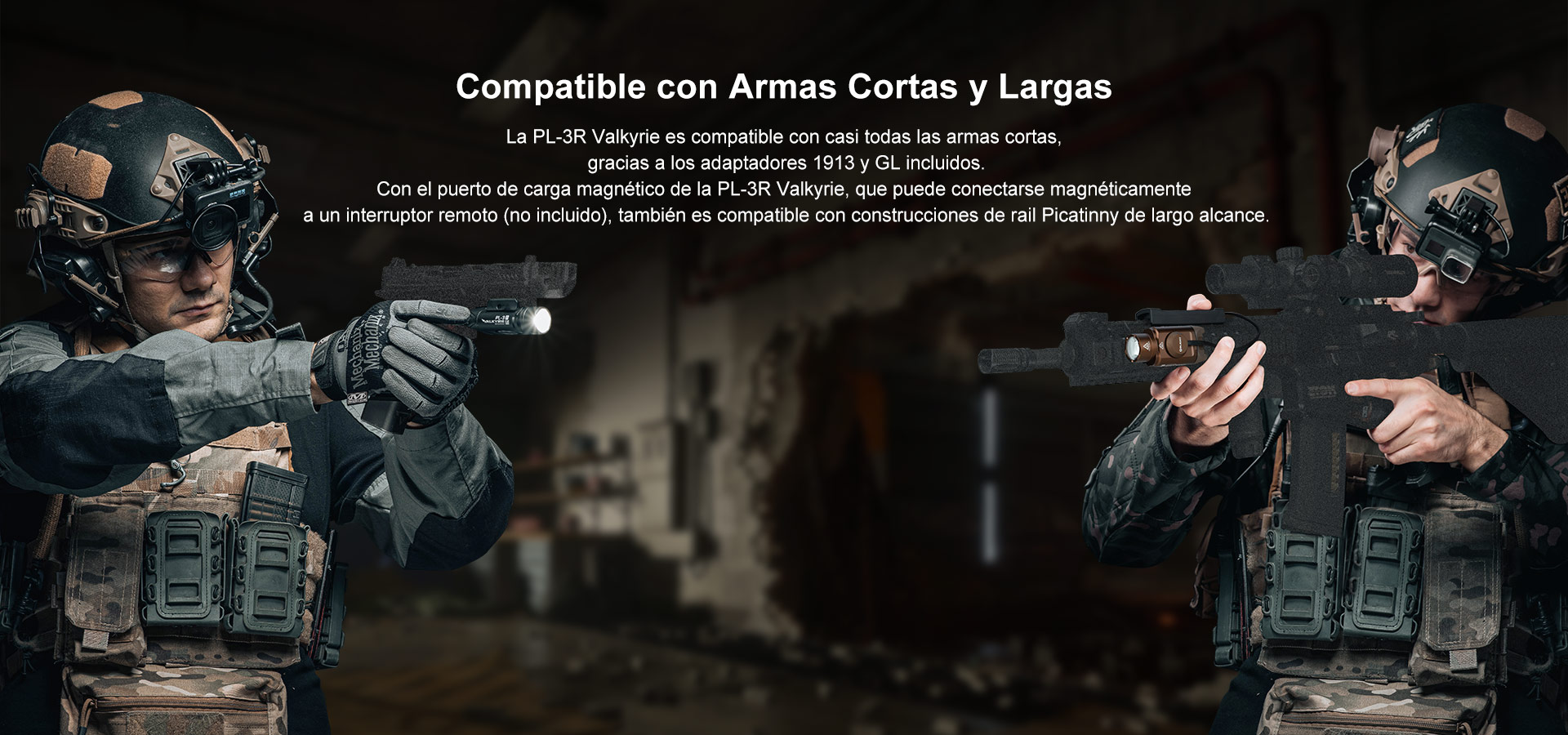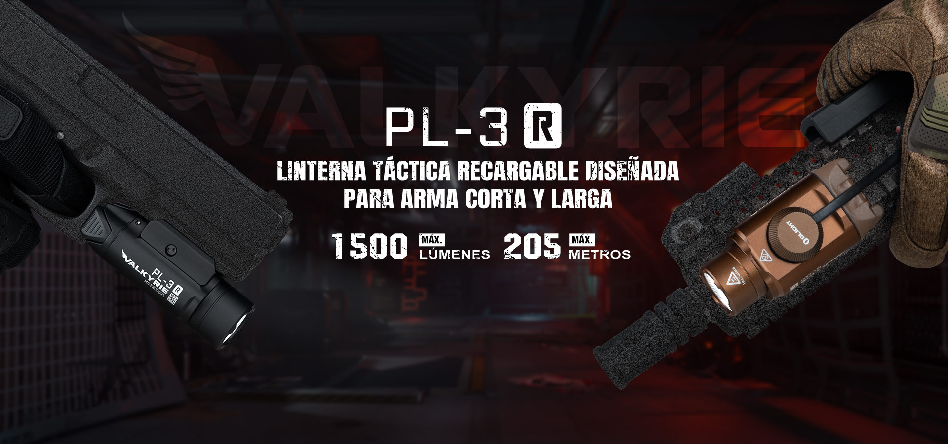 La PL-3R Valkyrie es una linterna recargable para arma con riel y Key-block deslizante ajustable. Alimentada por una batería de polímero de litio recargable de 900 mAh, tiene una salida máxima de 1.500 lúmenes y un alcance de 205 metros. El Key-block en el montaje en riel se puede ajustar para colocar la linterna en el riel, lo que la hace compatible con una gama más amplia de armas. Ha sido fabricada con un nuevo tornillo de fijación que proporciona un montaje más sólido y facilita el desmontaje. El puerto de carga magnético de la Valkyrie PL-3R se puede conectar magnéticamente al pulsador remoto, lo que hace que la PL-3R también se pueda utilizar en armas de acción larga.